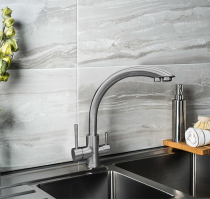 하나의 수전에 정수와 수돗물을 독립적으로 사용할 수 있어 각각의 수전이 필요없어 보다 씽크대를 여유롭게 사용할수 있음